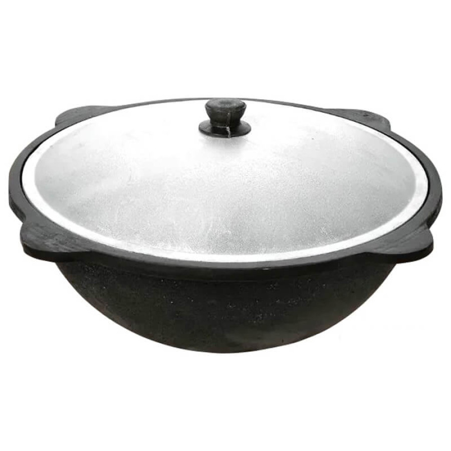 Казан Davr Metall Узбекский чугунный с крышкой, круглое дно (10 л)