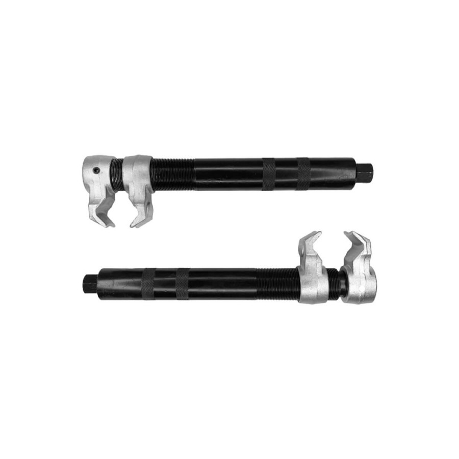 Пара внешних стяжек для безопасной разборки/сборки стоек и узлов подвески. Инструмент надёжно крепится на винтовой пружине и позволяет контролируемо сжимать её при замене амортизаторов, опорных подшипников, резинок и чашек, а также при дефектовке. Подходит для большинства легковых авто и стоек типа MacPherson.